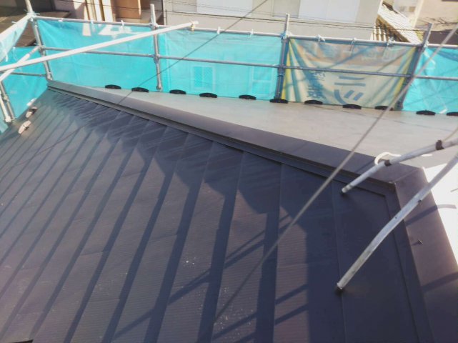 今回は外壁は吹き付け、樋はすべて交換し、スレート屋根を重ね貼りし、金属屋根にしました。お客様のご要望をしっかり確認しながら施工しました。たくさんの挑戦をさせて頂き、私も大変勉強になりました。