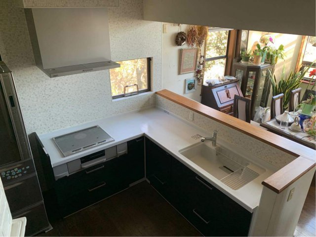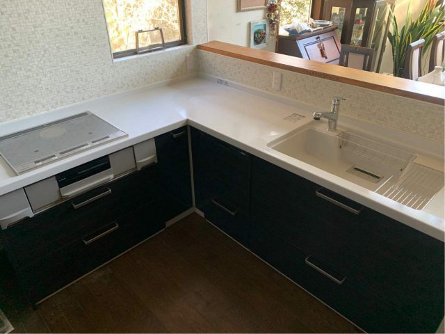 この度は一年越しのキッチンリフォームとのことでご満足して頂けるようご提案させて頂きました。元々のキッチンもL型で素敵なキッチンでしたが、実際にショールームでご見学されて素敵な人工大理石天板のキッチンになりました。初めてのIHクッキングヒーターにも戸惑ってらっしゃいましたがすぐに慣れて頂いたようで何よりです。