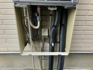 前と同じリンナイの給湯器にしてもらい、配管を隠すカバーも取り付けてもらいました。