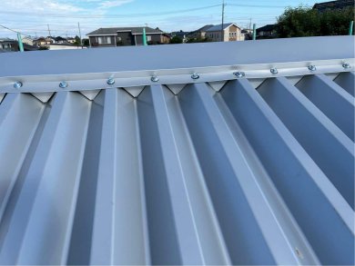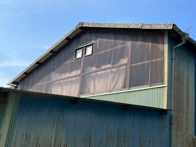 お客様から相談をうけ、倉庫の屋根・樋を修理しました。屋根はガルバニウムのカバー工法(アスベストの小波に対応)樋はPanasonicアイアン丸です。農家の方の農作物を雨にぬらさないようにする思いが伝わりました。これからも地域の為、使命感をもって仕事をして行きます。