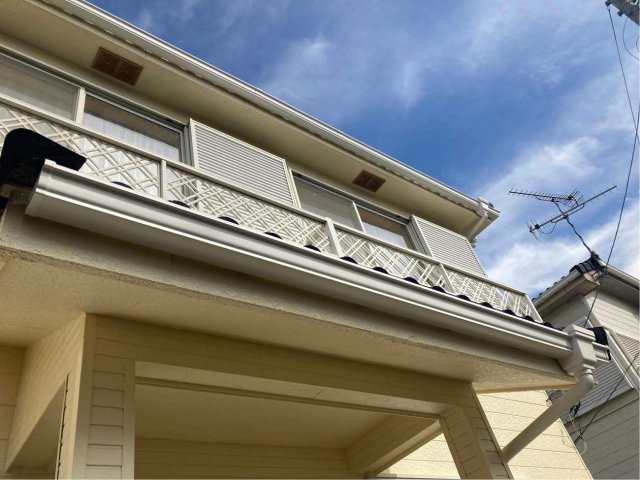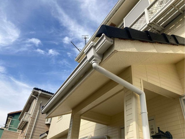 雹害で樋をPanasonicPC50に変更。屋根を大同塗料ハイルーフマイルドフッ素ブラック、雨戸を日本ペイント4Fフッ素に塗装しました。きれいになり喜んで頂けました。