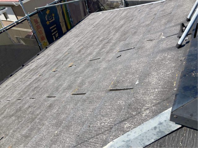 雹によりスレート屋根が多く割れてしまいました。