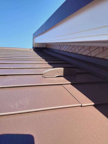 雹害での相談でPGのガラス交換を至急に対応しました。屋根はセルフルーフィング、ガルバリウム板金のMSタフルーフにて仕上げました。雪止め金具も設置しました。軍配の樋も部分交換し、きれいに丈夫になりました。