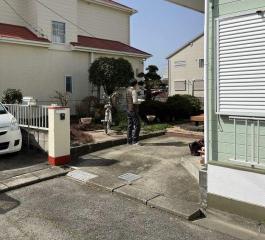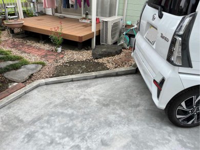 駐車場の拡張の相談をうけました。エスビックで土留めがわりにコンクリートを打設しました。広くなり喜んでくださいました。