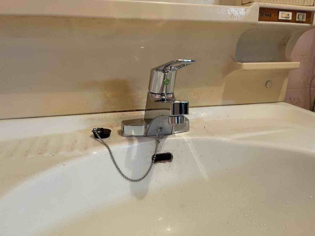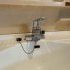 商品はKVKのシングル水栓です。すっきりとした水栓でレバーで水を出力できるので、ハンドルよりも簡単に水を出すことができます。