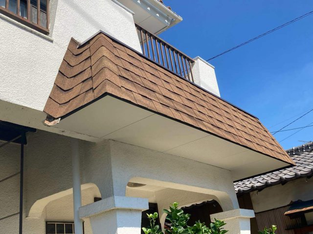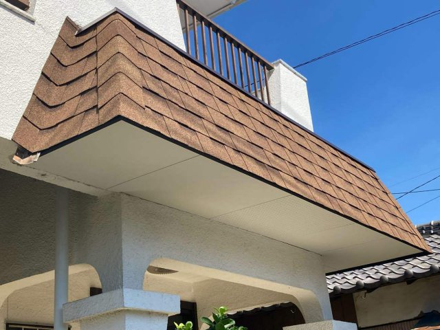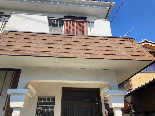 瓦が落ちかかっており大変危険な状態でしたので、軽いアスファルトシングルでの葺き替えを提案させていただきました。とてもご満足いただいたようですので良かったです。