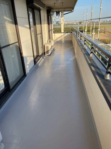 今回はベランダのFRP防水の改修工事をさせていただきました。