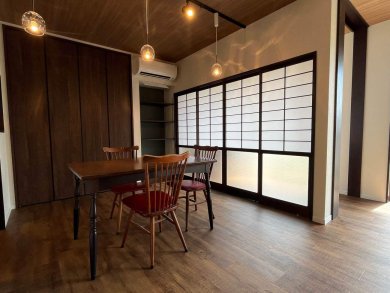 もともとあったダイニングセットもお部屋の雰囲気にピッタリあい、素敵な仕上がりになりました。お喜び頂き嬉しく思います。