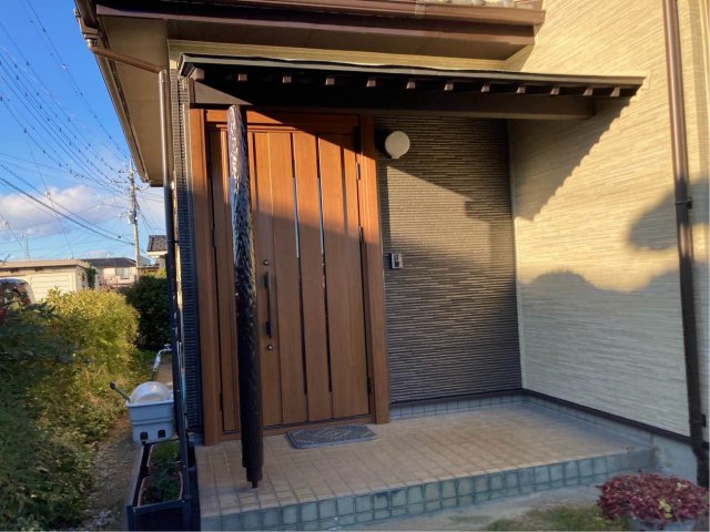 玄関部分のみアクセントとして色を変更させていただき、瓦に合うようにさせていただきました。