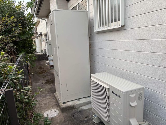 今回設置させていただいたのは、パナソニックのエコキュート フルオート(品番:HE-S37LQS)です。この製品は、高い省エネ性能と、お湯張りの自動化など快適な機能が充実しています。