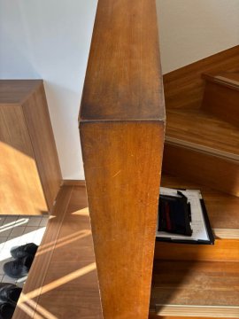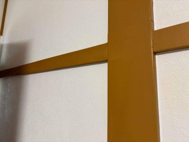 今回、室内の階段や窓枠の塗装に「日本ペイント」の「フタル酸樹脂エナメル塗料 17-50L」を使用させていただきました。剥がれが見られた箇所もしっかりと補修を施し、2度、3度と丁寧に塗り重ねることで、新築時のような美しい光沢と耐久性を取り戻しております。