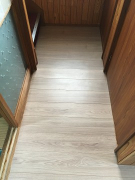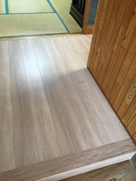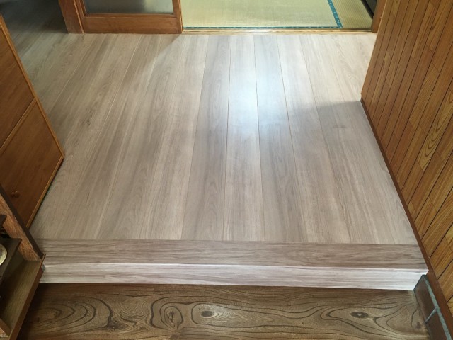 各部屋との段差を確認し、15mm厚のベニアをフローリング施工前に捨て張りさせて頂き、補強と共に段差を解消させて頂きました!!