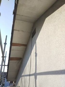軒天板(屋根の裏側部分に張ってある板)がめくれてきたり、はがれたりして気になっていました。余りにも見栄えが悪くなってきて・・・。