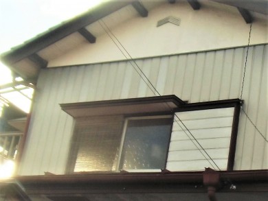 ベランダから見る板金屋根は少しサビが出ていましたのでケレンをして洗浄、サビ止めを入れしっかり塗装しました。