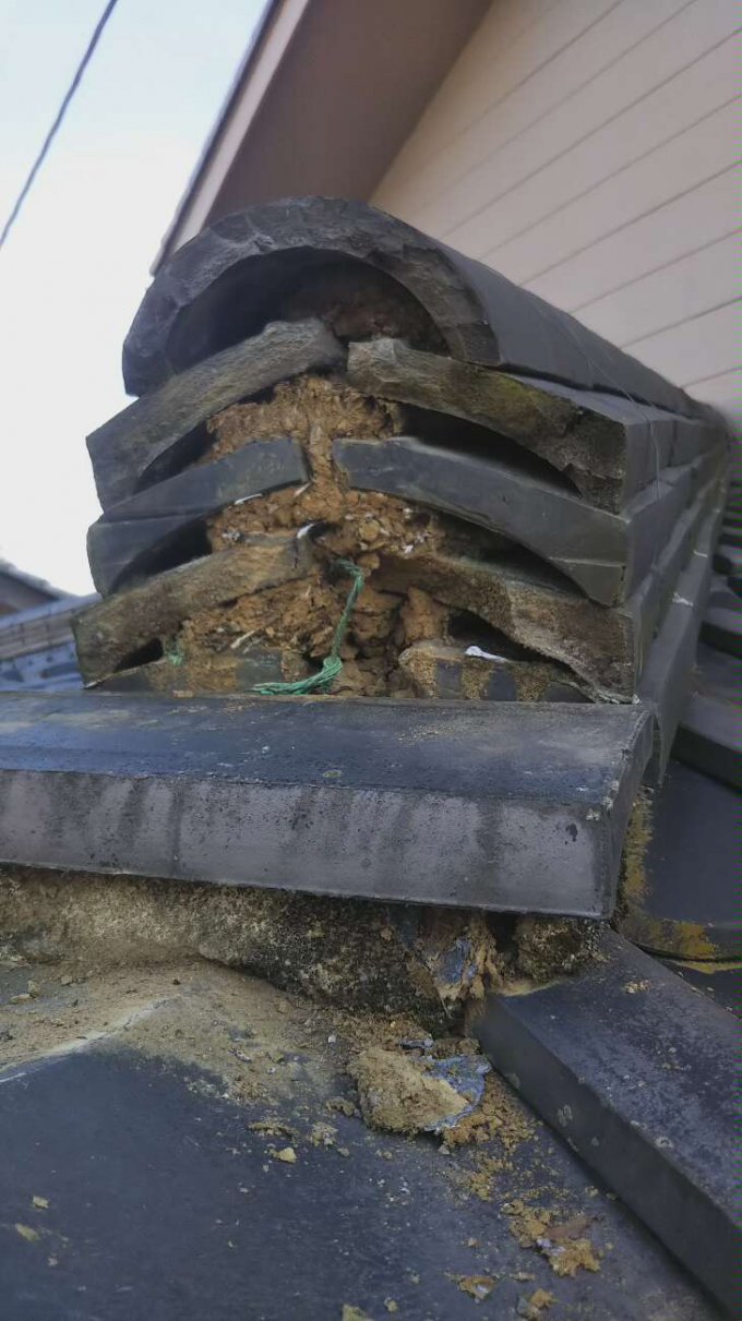 泥を止めるために漆喰を入れるのですが経年劣化で漆喰が取れて棟が崩れやすかったり中の泥が流れ出してしまったり、最悪のケースだと雨漏りしてしまったりします。